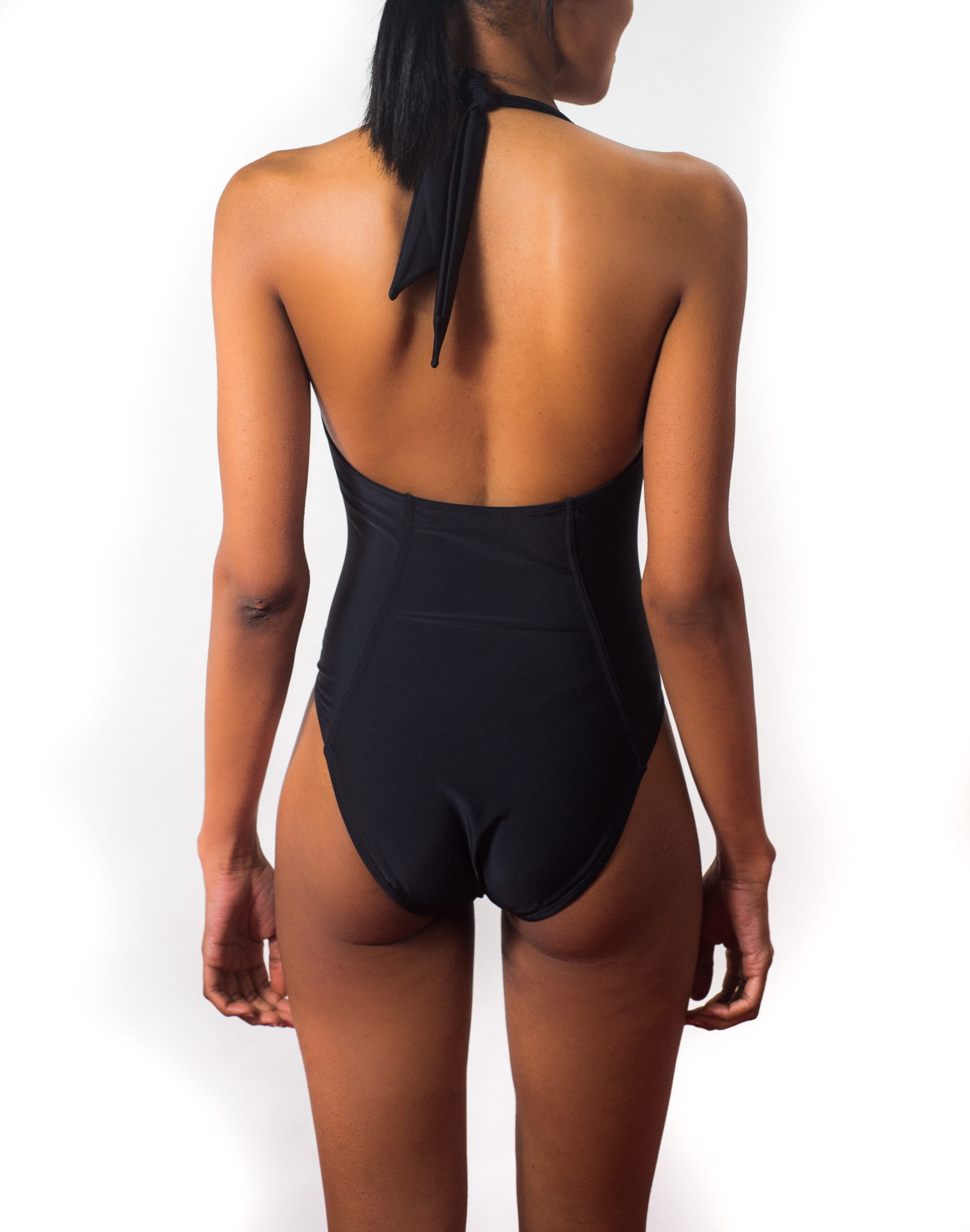 Este sofisticado traje de baño de una pieza tiene un escote de efecto envolvente, sus tirantes forrados se anudan alrededor del cuello y resaltan las costuras fruncidas en el busto para un resultado elegante a la vez que proporcionan una perfecta sujeción del pecho.