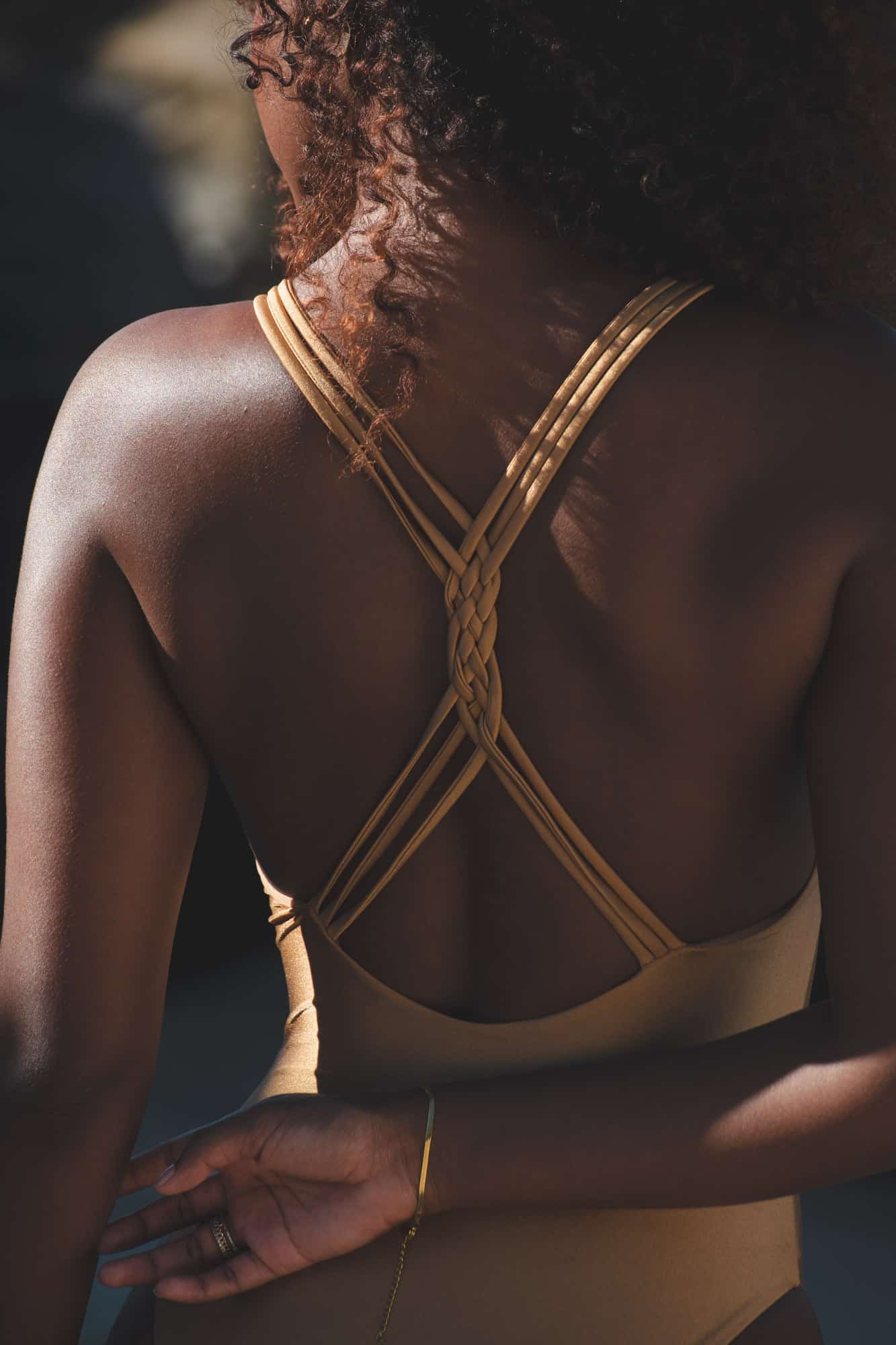 The Alma One-Piece brings an artisanal touch to the Terra Mar collection. Defined by its intricately braided strap detailing and a striking open back, this piece is rendered in a radiant, sun-drenched gold. With a clean, minimalist front and an unexpectedly detailed reverse, it offers a sophisticated balance of texture and silhouette. Crafted from our signature high-sheen fabric.