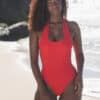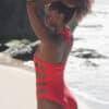 The Vesta One-Piece makes a bold statement in a striking terra-red hue. Defined by its signature side cut-outs and a daring silhouette, this piece features a sleek finish that accentuates the natural frame. Crafted from high-stretch, seamless fabric, it balances raw elemental energy with a polished, modern fit—perfect for transitioning from a day on the shore to a sun-drenched afternoon.
